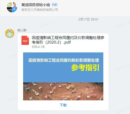 面對疫情下工程項目普遍面臨的復工困難、成本增加及工期延誤等問題,為避免由此產(chǎn)生的建設工程糾紛,將對公司的負面影響降到最低,公司招標小組全體動員,第一時間系統(tǒng)學習《因疫情影響工程合同履約及價款調整處理參考指引(2020.2)》,并將其與公司相關業(yè)務相結合,對相關合同條款進行相應完善和優(yōu)化,為疫情期間公司工程合同的簽訂與履約做好充分準備。