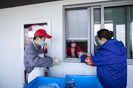 客串“外賣”,冬日暖陽。按照疫情防控的要求,公司將培訓公寓設置為集中隔離區(qū),用于返寧員工復工前封閉隔離。隨著2月8日第一批員工入住,食堂就主動承擔了隔離員工一日三餐的送餐服務。每到飯點提前分餐裝盒保溫,專人定時送至隔離區(qū)的每一位員工。隨著部分員工隔離結束返回公司租賃的開發(fā)區(qū)公寓住宿,又主動承擔了這部分員工周末早中晚三餐與送餐服務。據(jù)不完全統(tǒng)計,食堂已為隔離員工送餐4416份,在特殊時期用一份份“暖心外賣”溫暖了一百多名隔離員工的心。他們對此幽默的說“過年吃的終于消耗了,減肥成功”。