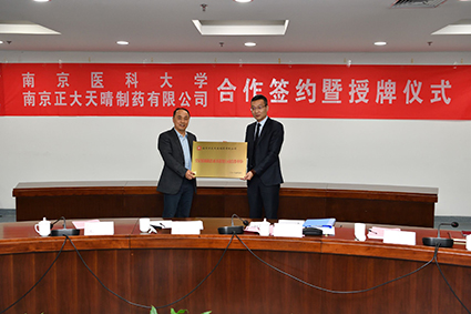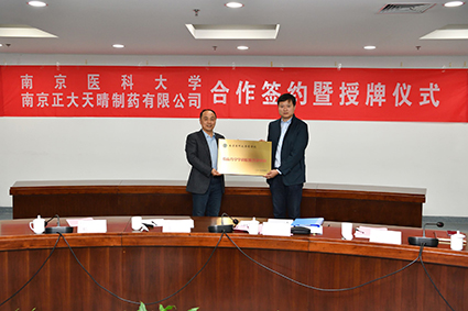 在和諧融洽的氛圍中,呂衛(wèi)東總監(jiān)與韓峰院長正式簽訂了戰(zhàn)略合作協(xié)議,設(shè)立南京正大天晴為南醫(yī)大藥學(xué)院“臨床藥學(xué)學(xué)科聯(lián)盟”的共建單位、“南京醫(yī)科大學(xué)藥學(xué)院本科生的科研創(chuàng)新及社會服務(wù)實(shí)踐基地”,授牌儀式隨即舉行。