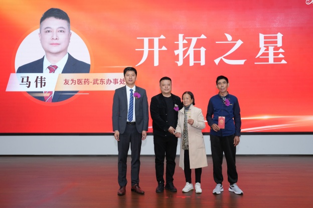“我們不僅是醫(yī)藥事業(yè)的參與者,更是健康未來的締造者。”先進(jìn)員工代表、友利醫(yī)藥孫冬明在發(fā)言中道出醫(yī)藥人的使命,并分享了一年來勇?lián)姑?、逐?mèng)前行的感受,期待未來與團(tuán)隊(duì)攜手跨越山海,貢獻(xiàn)更多力量。