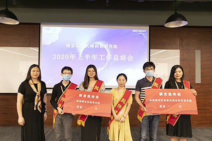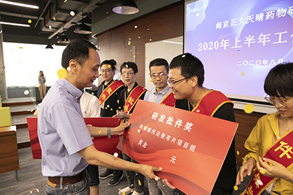 為樹(shù)立先進(jìn)典范,砥礪團(tuán)隊(duì)求索創(chuàng)新熱情,本次會(huì)議共頒發(fā)“研發(fā)成果獎(jiǎng)”7項(xiàng),分別授予2020年1-7月份成功獲得批件的7個(gè)項(xiàng)目組團(tuán)隊(duì),由田總等三位老總為獲獎(jiǎng)團(tuán)隊(duì)頒獎(jiǎng)。獲獎(jiǎng)代表在現(xiàn)場(chǎng)紛紛結(jié)合項(xiàng)目開(kāi)展過(guò)程中的特色經(jīng)驗(yàn)、深刻經(jīng)歷、能力突破感想進(jìn)行分享。