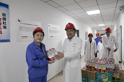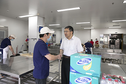在恒廣路總部,公司黨委副書記兼工會副主席李曉春、黨委副書記兼紀(jì)委書記黃文藝、黨委委員張潔陪同楊義林參觀并慰問了員工食堂、倉儲中心、工程技術(shù)中心等高溫崗位。