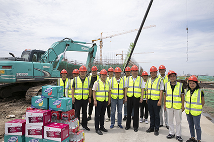 考慮到公司“普潤生物醫(yī)藥研發(fā)制造項目”正處于如火如荼的建設(shè)階段,楊義林特地來到位于江北新材料科技園的項目部看望工程團隊成員。公司資深副總經(jīng)理、工會主席王寬起,工程技術(shù)總監(jiān)吉訓(xùn)進陪同慰問。
