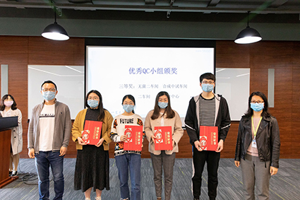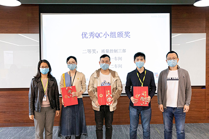 會議共表彰“軍令狀-優(yōu)秀部門”1個,以及“優(yōu)秀QC小組”一等獎1個、二等獎3個、三等獎4個,由趙夢晗總監(jiān)、朱文華總監(jiān)為獲獎代表頒獎?!败娏顮?/span>-優(yōu)秀部門”代表隨后上臺,結(jié)合本職工作優(yōu)化、質(zhì)量目標(biāo)達(dá)成、下階段業(yè)務(wù)展開進(jìn)行分享,獲得了到場人員的一致好評。