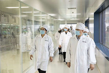 劉小斌副書記一行先后參觀了公司D106車間、無菌制劑車間、研究院等,實(shí)地查看公司產(chǎn)能規(guī)模及配套硬件設(shè)備、研發(fā)平臺建設(shè)及人員配置等情況,充分肯定了公司在現(xiàn)有體量下的研發(fā)智造實(shí)力,并對園區(qū)內(nèi)別出心裁的設(shè)計(jì)元素表示贊賞。