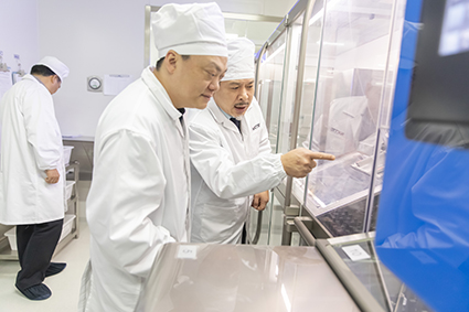 在公司領(lǐng)導(dǎo)及同事的陪同下,劉登攀副董事長一行先后參觀了公司D106車間、研究院,重點(diǎn)了解公司研發(fā)及生產(chǎn)環(huán)境、實(shí)驗(yàn)室和車間儀器配置及人員結(jié)構(gòu)情況等。九州通醫(yī)藥集團(tuán)的各位領(lǐng)導(dǎo)對于公司高規(guī)格的研發(fā)、生產(chǎn)平臺及各業(yè)務(wù)快速發(fā)展表示高度肯定。